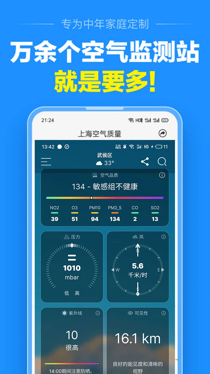 健康关怀:针对敏感人群提供过敏原浓度、紫外线强度等专项报告。