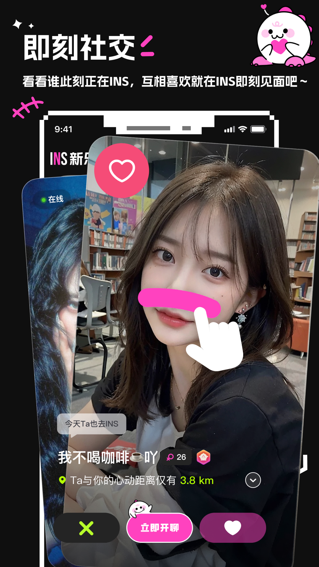 看看谁此刻正在INS,互相喜欢就在INS即刻见面吧~ 在这里,你可以实时发现在线好友,一键匹配兴趣相投的伙伴,开启即时聊天或语音互动。无论是深夜失眠想找人倾诉,还是周末无聊想约人玩耍,INS新乐园都能帮你快速找到合适的玩伴,让社交变得更简单、更有趣。