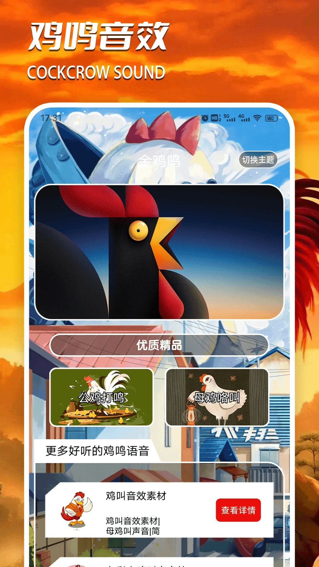 大公鸡叫提供多种公鸡打鸣音效,满足不同用户的喜好。