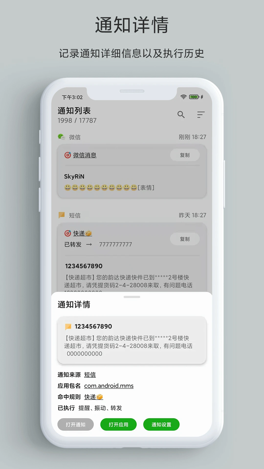 它可以通过您设置的若干通知匹配规则,准确匹配通知并执行一系列操作,并记录通知以及自动执行历史,方便您对通知的灵活管理和使用。