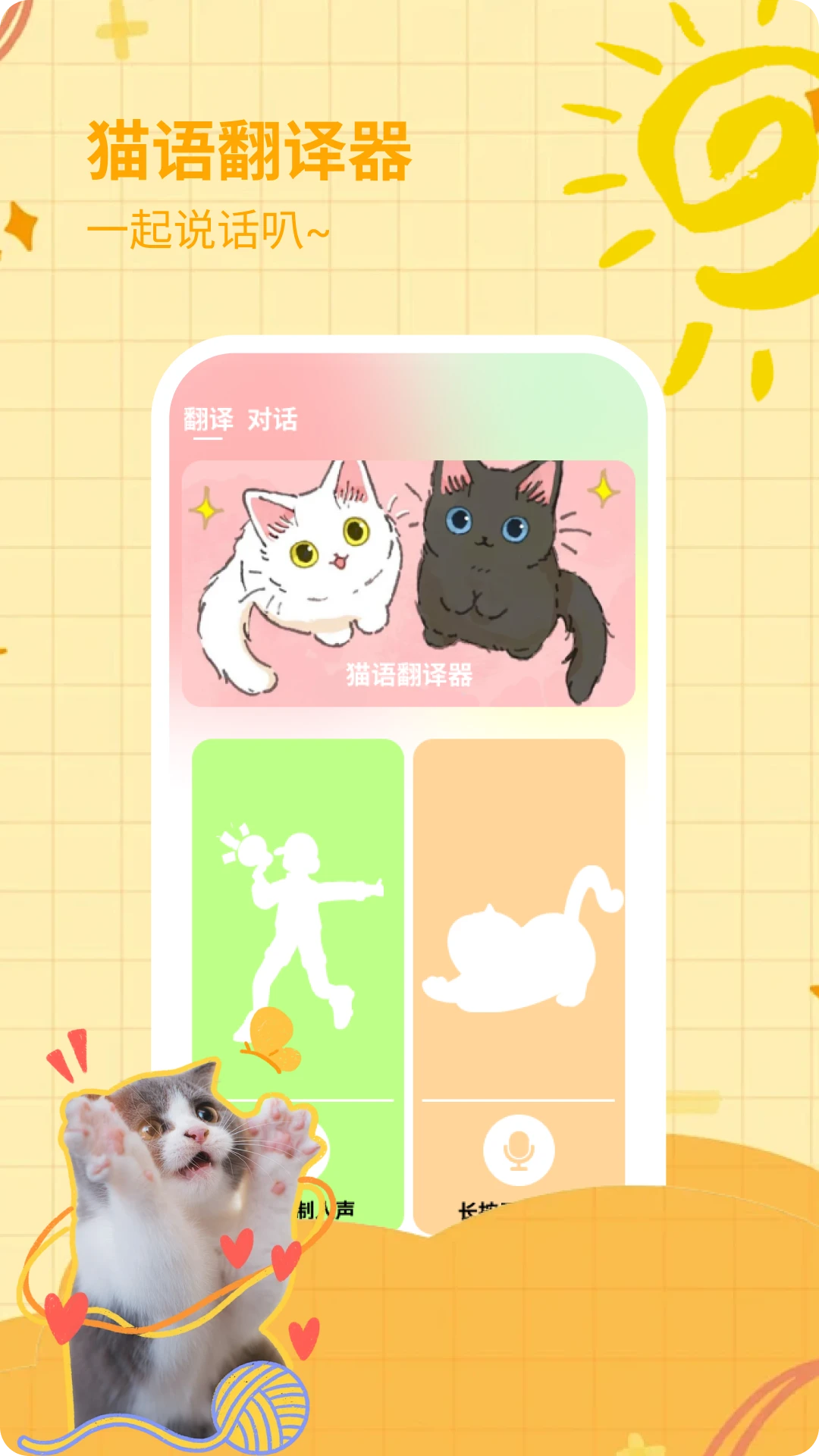 猫声翻译器【人声翻译】将铲屎官的声音转化成狗语猫语,让人狗人猫交流更轻便;