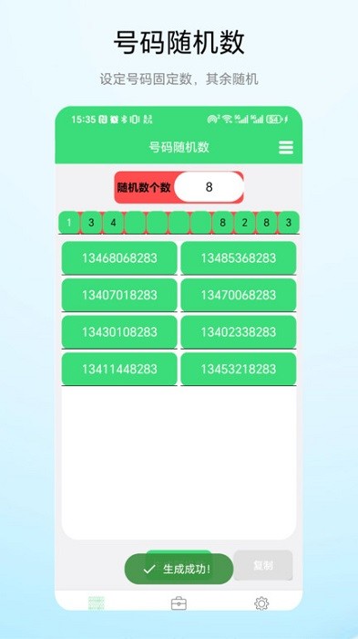 支持固定位数与随机位数组合生成,可设定特定数字作为固定部分,其余由系统随机填充。