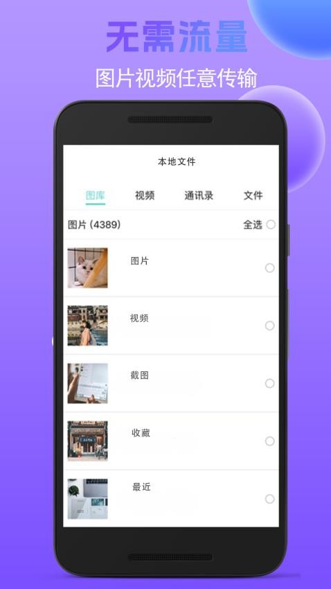 软件会智能分类展示用户的本地文件和手机文件,方便用户快速选择需要传输的数据,提升操作效率。