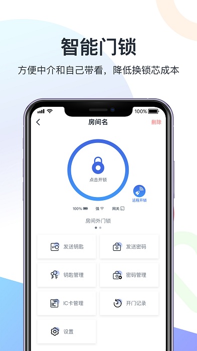 『门锁』、『电表』一应具全,方便中介和自己带看,降低换锁芯成本,随时管控自己的房源,有效实现催租催收、入户情况核实等场景管理。支持远程授权开门,可设置临时密码,访客记录实时查看,让房屋管理更加安全可靠。