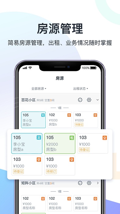 -支持多种物业形态:租金可按照月或平米计算统计,适合长租公寓及商业办公、写字楼业务。