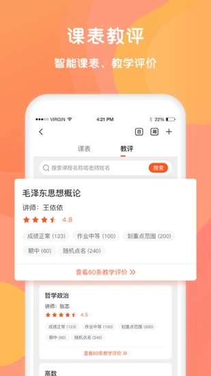 【课表教评】教学评价助你轻松掌握课程教师动态!轻松便捷添加课表,触及深处的心灵鸡汤!系统支持多学期课表管理,还能查看往届学长学姐的真实评价,让你选课不再迷茫。