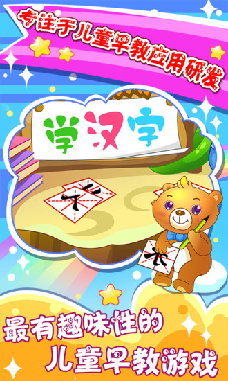 宝宝儿童学汉字:帮助3-6岁的儿童学习汉字,让宝宝如玩耍般爱上汉字学习,稳步提升识字量,激发宝宝阅读兴趣。通过游戏化的学习方式,培养孩子自主学习的习惯和能力。
