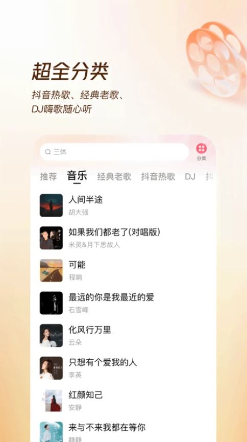 抖音热歌、经典老歌、广场舞、华语流行、DJ、轻音乐、儿歌,各种品类应有尽有。分类细致明确,帮助用户快速找到心仪的音乐类型。