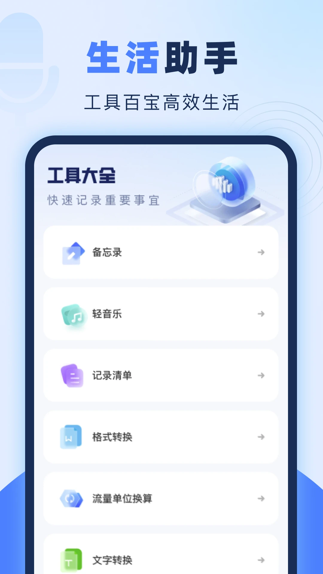 【录音专家软件】是一款集专业录音与高效管理于一体的实用工具。它让您轻松开启高清录音,支持人声、音乐多种模式自由切换,录制过程可随时暂停、继续或重置,确保每一段声音都能被完整捕捉。录音文件可便捷命名并智能归档,通过直观的月历视图,您能快速定位和回听任何日期的记录。更有内置百宝箱,文字处理、备忘笔记与轻音乐播放等丰富功能,全方位满足您的日常所需。无论是会议记录、灵感采集还是生活备忘,它都是您得力的随身助手,让声音管理与生活安排都变得井井有条。