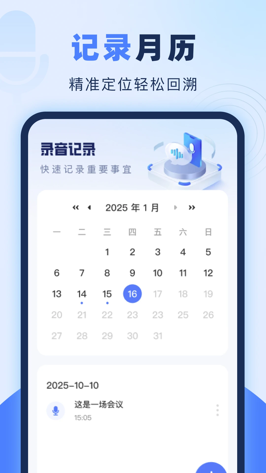 月历视图管理创新设计,按日期直观展示录音文件,查找更便捷