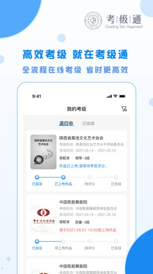 考级通app采用创新的网络自动化系统,将传统的艺术考级流程全面数字化。从报名缴费到分级管理,从在线评审到成绩查询,所有环节都实现了智能化操作,彻底解决了传统考级中手工操作带来的效率低下和易出错问题。