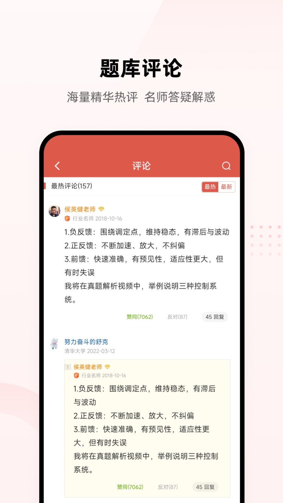 经验文章,最详细最全面的考研指导全攻略。考前押题,模拟真题难度进行考前实战。同步练习,与教材同步的配套习题集。名师直播,答疑解惑,与名师随堂互动。此外还提供智能组卷功能,可根据个人需求自动生成模拟试卷;学习计划模块可定制个性化复习方案;收藏夹功能方便标记重点题目随时复习。所有功能设计都围绕提升学习效率展开,让备考事半功倍。