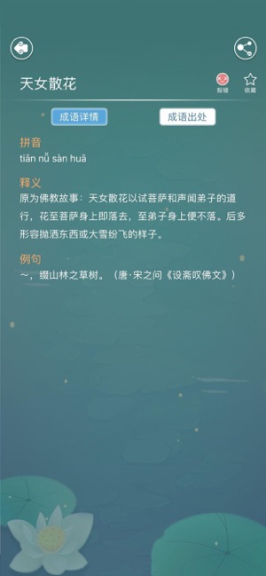 同反义词:系统自动关联每个成语的近义词和反义词,形成知识网络,方便用户对比学习,拓展词汇量,提升语言表达能力。