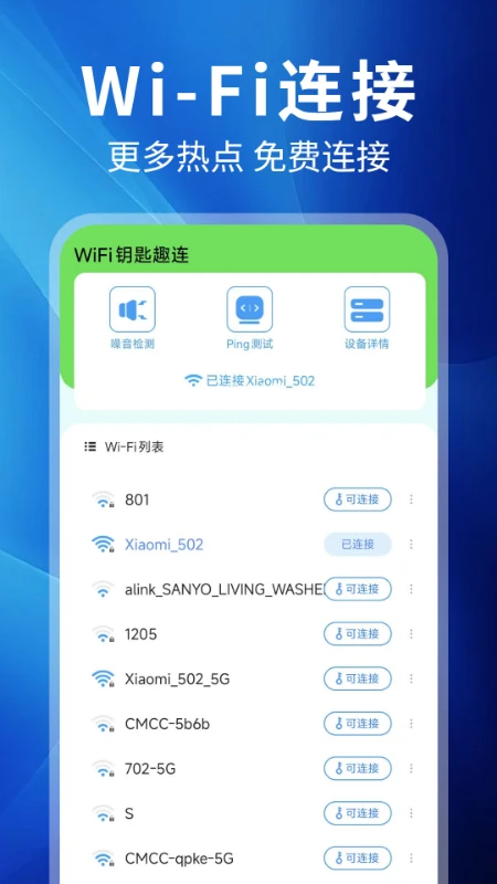 自动连接优化:根据信号质量和网速自动推荐并连接最优WiFi,无需手动操作。