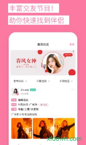 春风十里手机版是一款专为年轻人打造的社交交友软件,它以独特的社交理念和丰富的功能吸引了大量用户。通过智能匹配算法,软件能精准推荐附近志同道合的朋友,让交友变得更加简单有趣。无论是寻找知心好友,还是邂逅浪漫缘分,春风十里都能满足你的需求。软件界面简洁美观,操作流畅便捷,更有多种趣味互动方式,让每一次交流都充满惊喜。现在就加入春风十里,开启你的社交新体验!