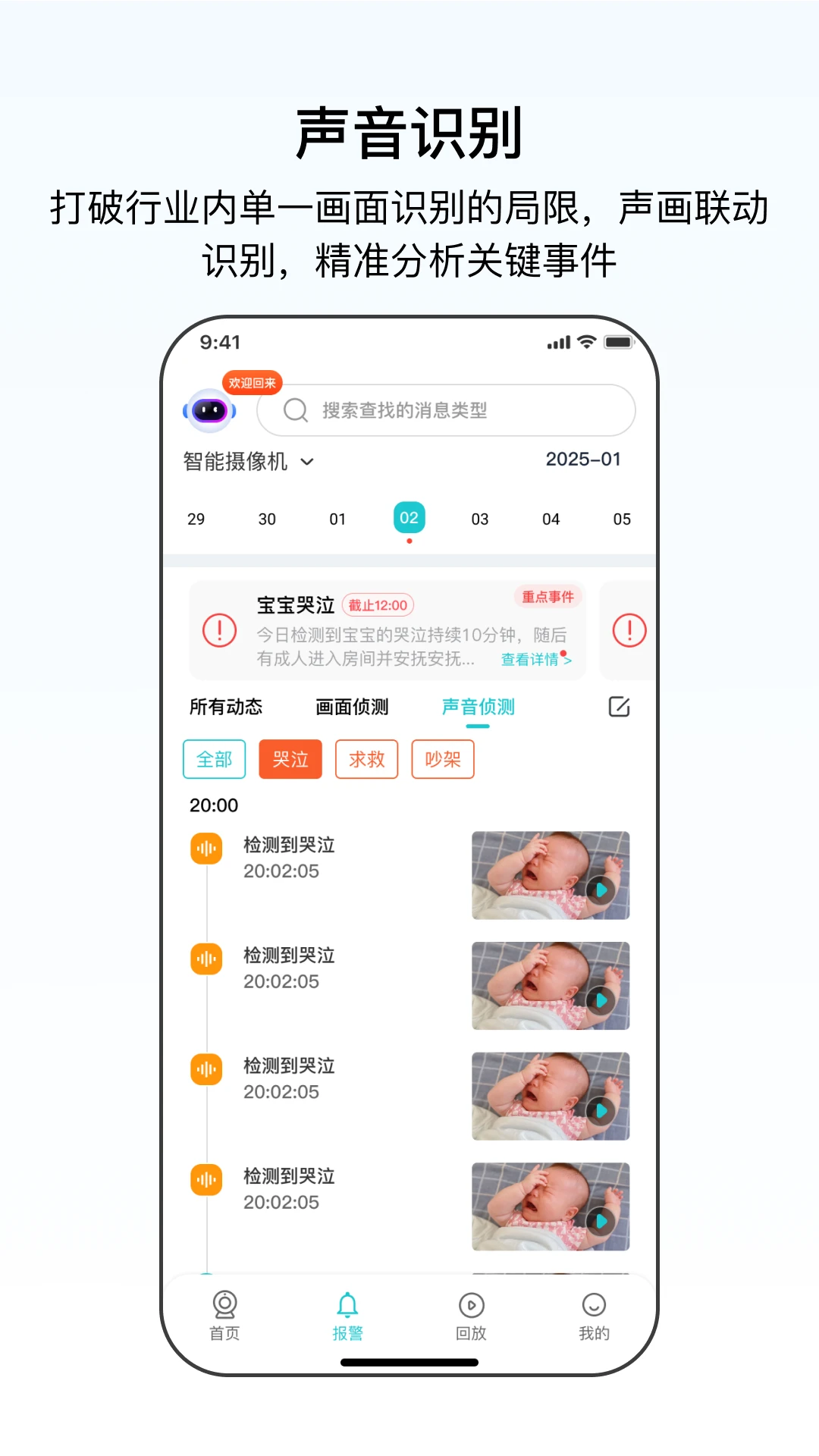 异常声音检测:可识别玻璃破碎、婴儿啼哭等特定声音,及时通知用户。