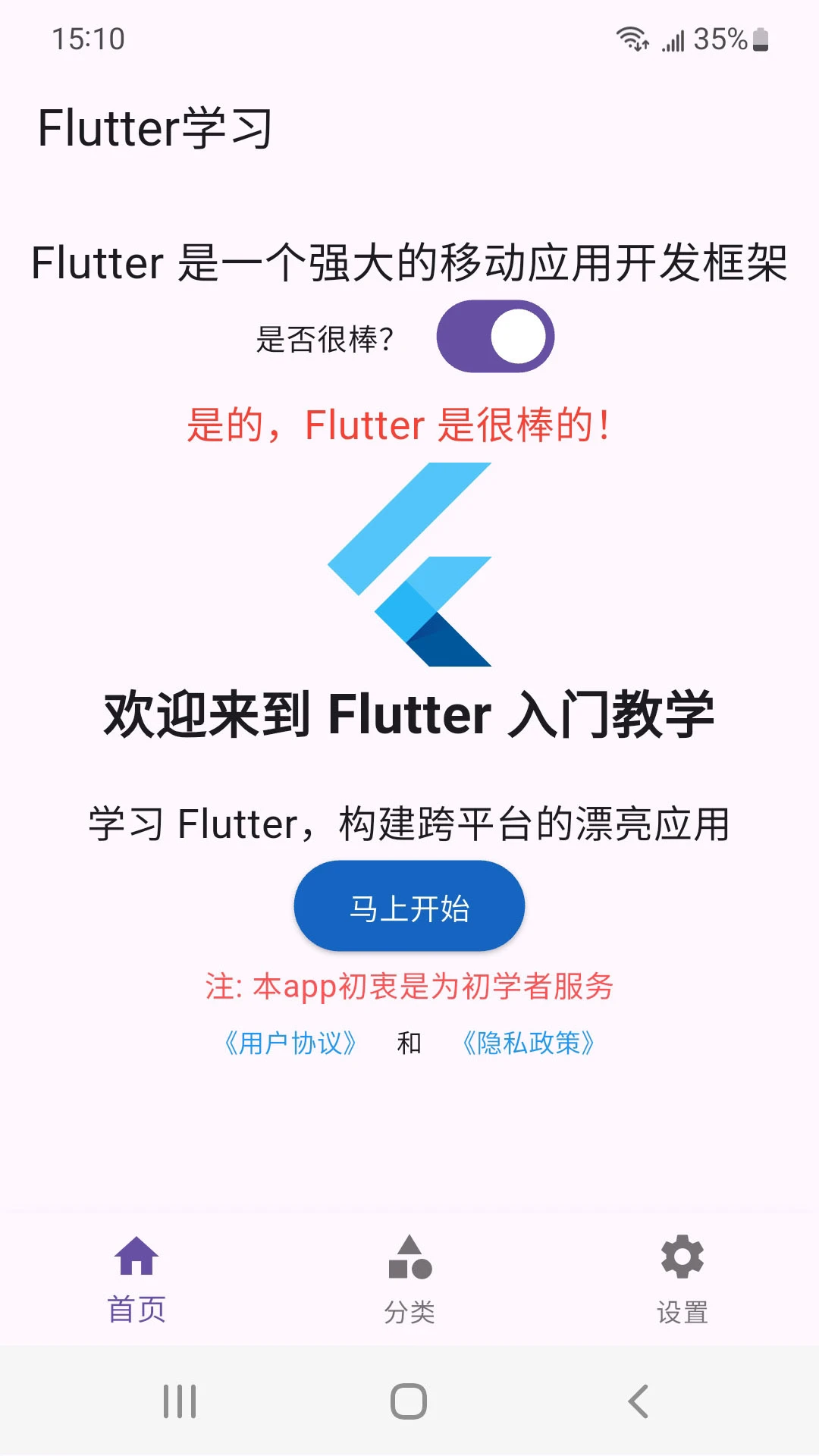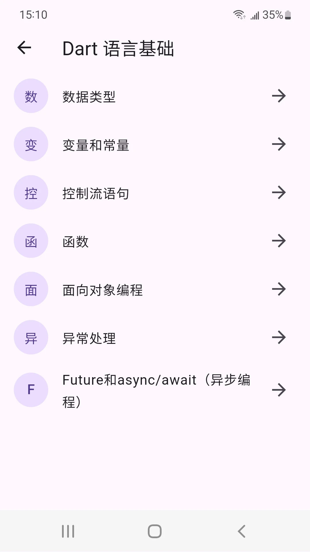 「Flutter学习」是一款专为移动开发初学者打造的阶梯式学习应用,通过系统化的课程设计帮助用户快速掌握Flutter开发的核心技能。应用以Dart语言为基础,逐步引导学习者深入Flutter框架的UI构建、布局设计和交互逻辑,涵盖从基础语法到实战项目的完整知识体系。无论是零基础的新手还是希望提升技能的开发者,都能通过清晰的模块划分和循序渐进的练习,高效掌握跨平台应用开发的核心技术。