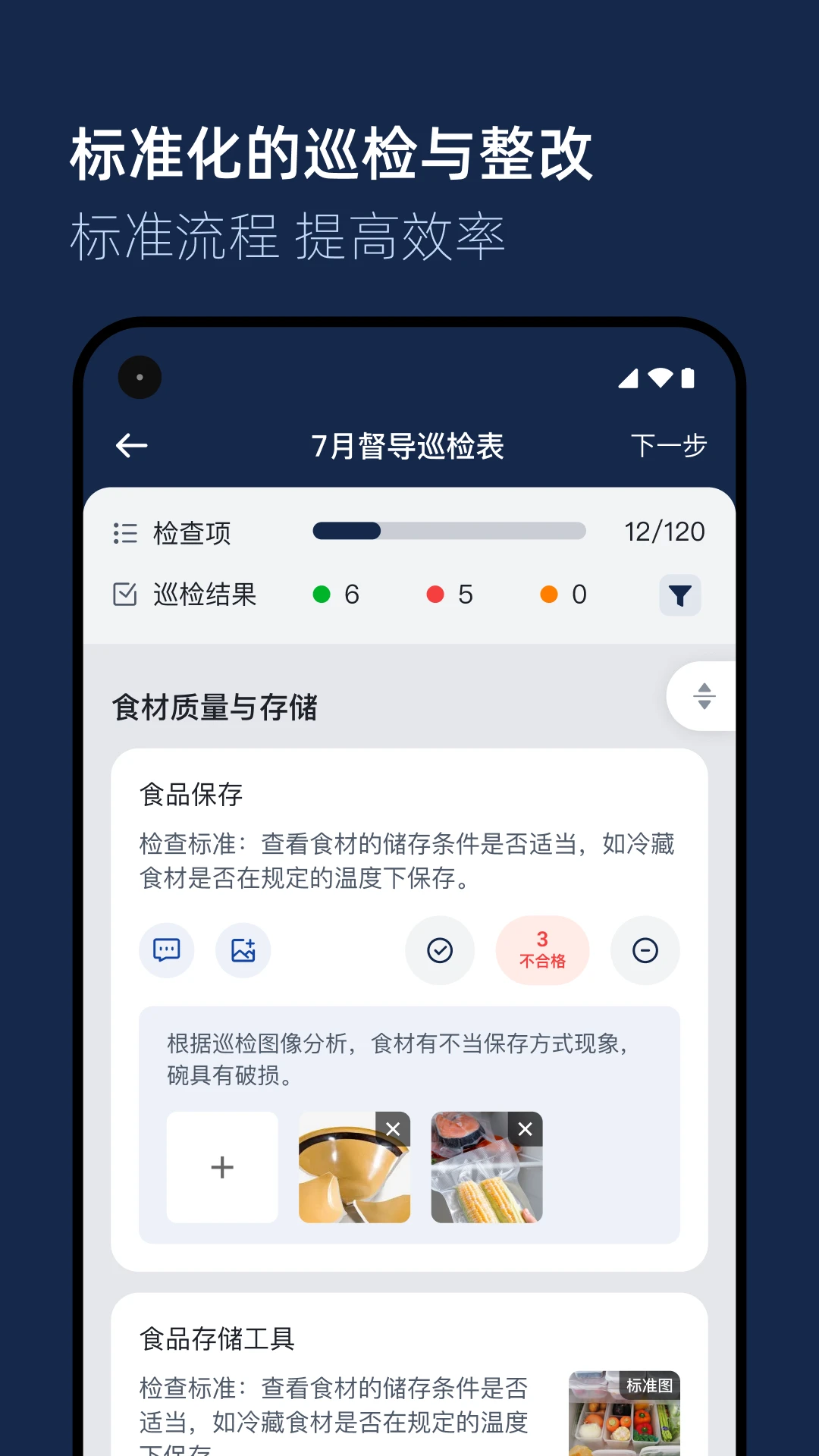 标准化巡检模板:内置行业通用检查项库,支持自定义流程,一键生成整改报告。