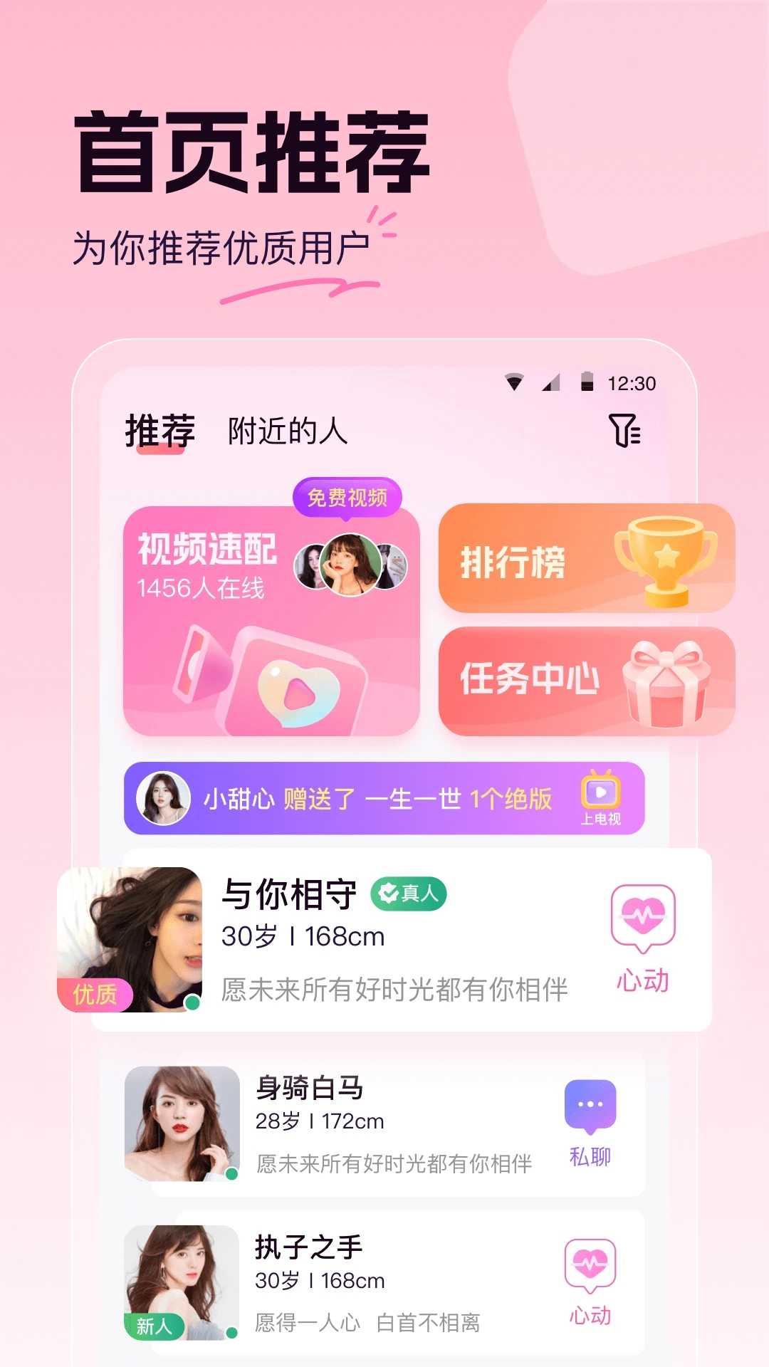 【海量用户】相缘拥有数百万活跃用户,覆盖全国各大城市。无论您身处何地,都能找到附近的优质单身人士。平台采用智能推荐算法,确保为您匹配最合适的对象,让交友不再是大海捞针。
