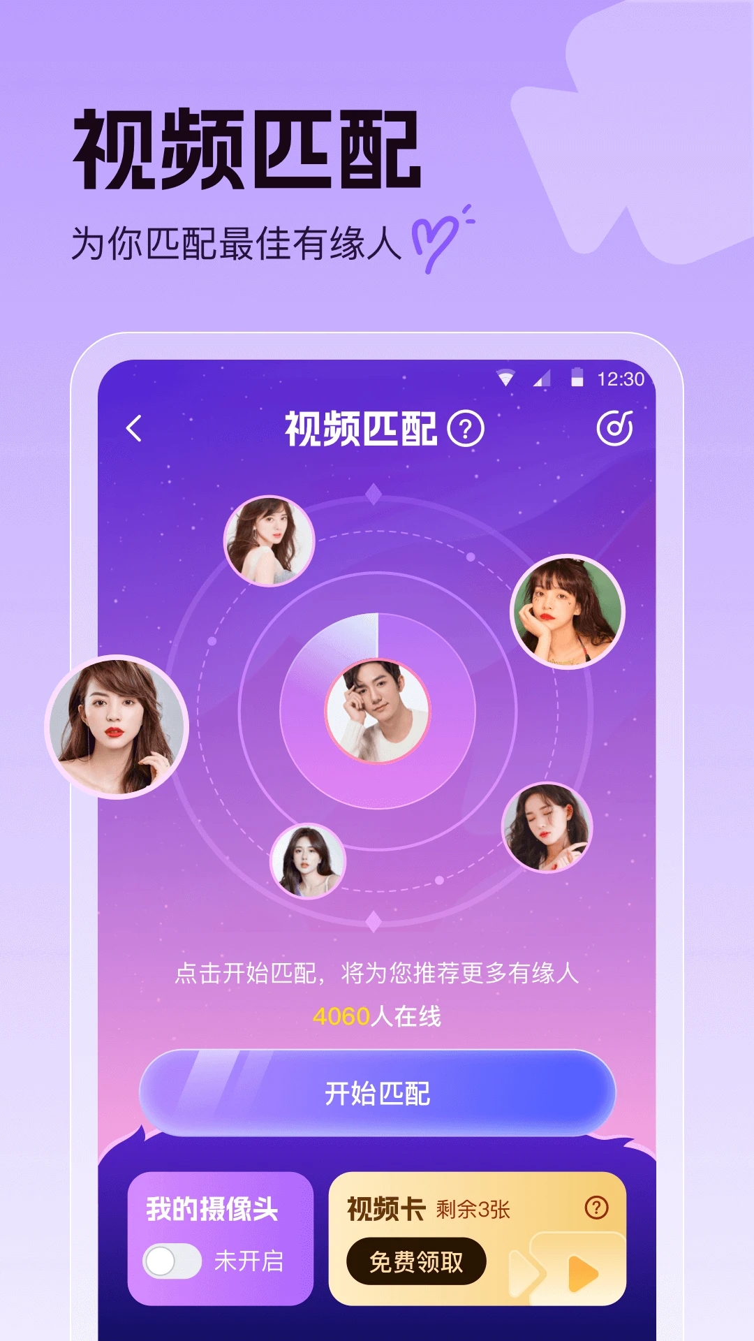 【主动匹配】相缘采用独特的智能匹配系统,能够根据您的兴趣爱好、地理位置等信息,快速为您推荐同城中活跃且兼容性高的异性朋友。您再也不用担心消息无人回复,系统会优先为您匹配近期在线的高质量用户,让您在相缘遇见心仪的对象变得更加轻松。