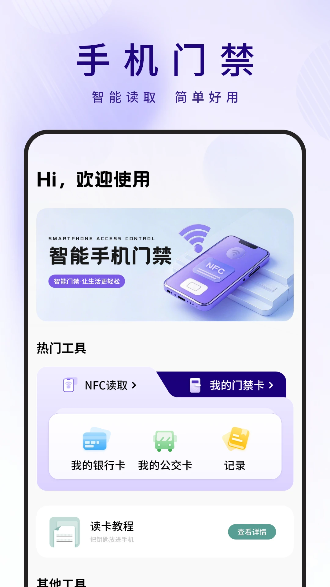 手机门禁卡是一款集多功能于一体的智能NFC应用,通过NFC技术实现门禁卡、银行卡和乘车卡的便捷管理。用户只需一部支持NFC功能的手机,即可轻松读取和写入智能NFC标签,告别传统实体卡的繁琐携带。无论是小区门禁、公交地铁,还是日常支付,手机门禁卡都能一卡搞定,为用户带来高效、安全的数字化生活体验。