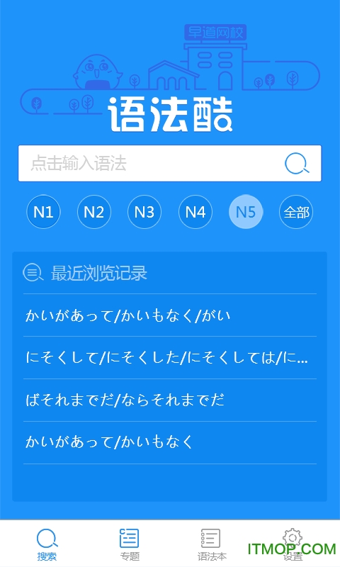 日语语法酷是一款专为日语学习者打造的智能学习工具,集语法查询、系统学习和个性化练习于一体。这款由早道网校精心研发的APP收录了从N5到N1级别的2000余条核心语法,通过智能搜索、专题训练和语法本功能,帮助用户高效攻克语法难点。其特色在于提供详尽的语法解析、易混淆点对比及真题例句,支持跨设备同步学习记录,让碎片化时间转化为知识积累。无论是备考日语等级考试还是日常学习,都能通过精准的模糊查询和分类练习快速提升语法水平。