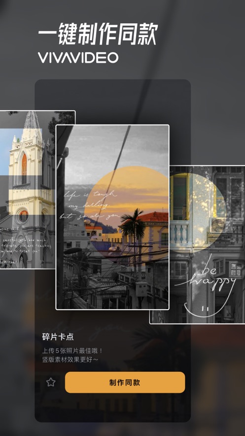 【创意拼贴】支持画中画功能,可在视频中嵌入照片、视频或GIF,非常适合制作与偶像合拍、情歌对唱等创意视频。