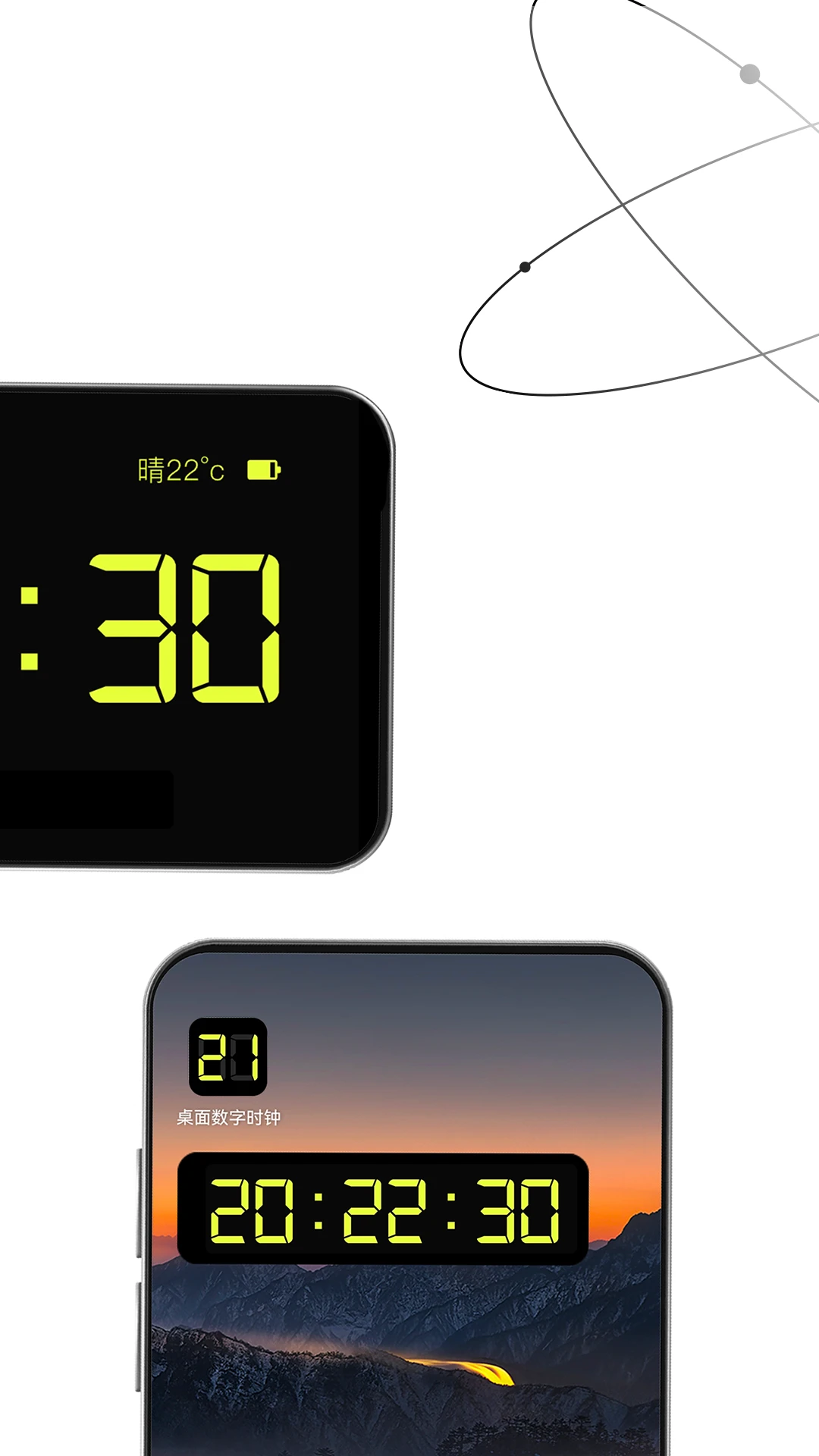 这是一款能让你短时间内高度集中注意力、快速进入【沉浸式专注】状态的奇妙小助手。打开桌面数字时钟,沉浸式专注于工作学习,赶走焦虑和拖延。推荐使用场景:【全屏时钟】有效减少手机上无关的信息干扰,静心学习工作,享受高效产出的时光。【悬浮时钟】时钟悬浮窗可以在任意App界面悬浮展示时间,提示时间的流逝。(悬浮窗大小可调节哦!)【全屏计时器】倒/正计时时间常亮显示,见证你的努力。【白噪音】将氛围感拉满,沉浸一段专注时光。产品亮点:【时间易掌握】模拟LED电子时钟,在手机上也能全屏常亮大数字显示时间。还包含:悬浮时钟、计时器、整点报时等实用时间显示和提醒功能。【个性化时间显示】多套个性主题:电子墨水时钟、像素风时钟、创意乾坤八卦时钟、科技风时钟等特色主题。自定义时钟皮肤:可更改时间显示大小、更改背景图,支持动态背景!【屏蔽无关干扰】白噪音有效帮助你屏蔽周围环境干扰,把更多的注意力集中到眼下的事情上。全屏上显示大大的数字时间更能引起你对时间的关注和心理暗示,减少走神机率。希望桌面数字时钟app能帮助你提高专注度,高效产出,顺利完成你的每一个小目标!