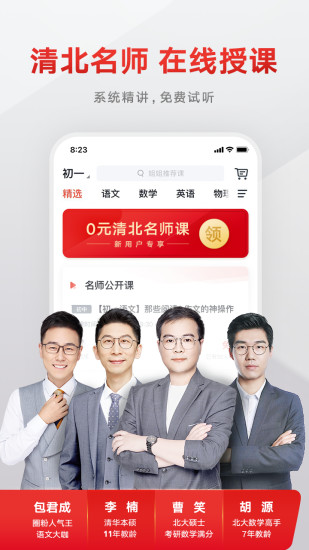 初中语文由有道初中语文掌门人包君成亲自授课,其国家一等奖课程内容深受学生喜爱。数学、英语、物理等科目则由清华北大毕业的名师团队执教,他们拥有10年以上教学经验,将多年积累的教学精华倾囊相授。平台对师资选拔极为严格,主讲教师100%毕业于清华北大等顶尖学府,经过6轮严格筛选,录取率不足1%。每堂课都经过平均30天的精心打磨,确保达到有道精品课的高标准要求。