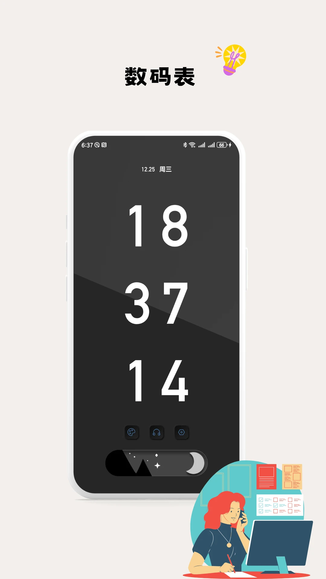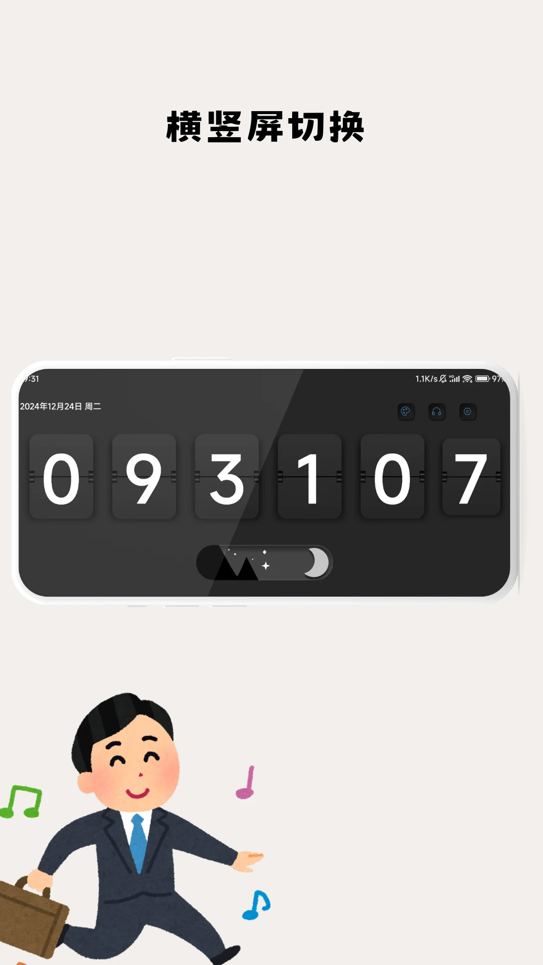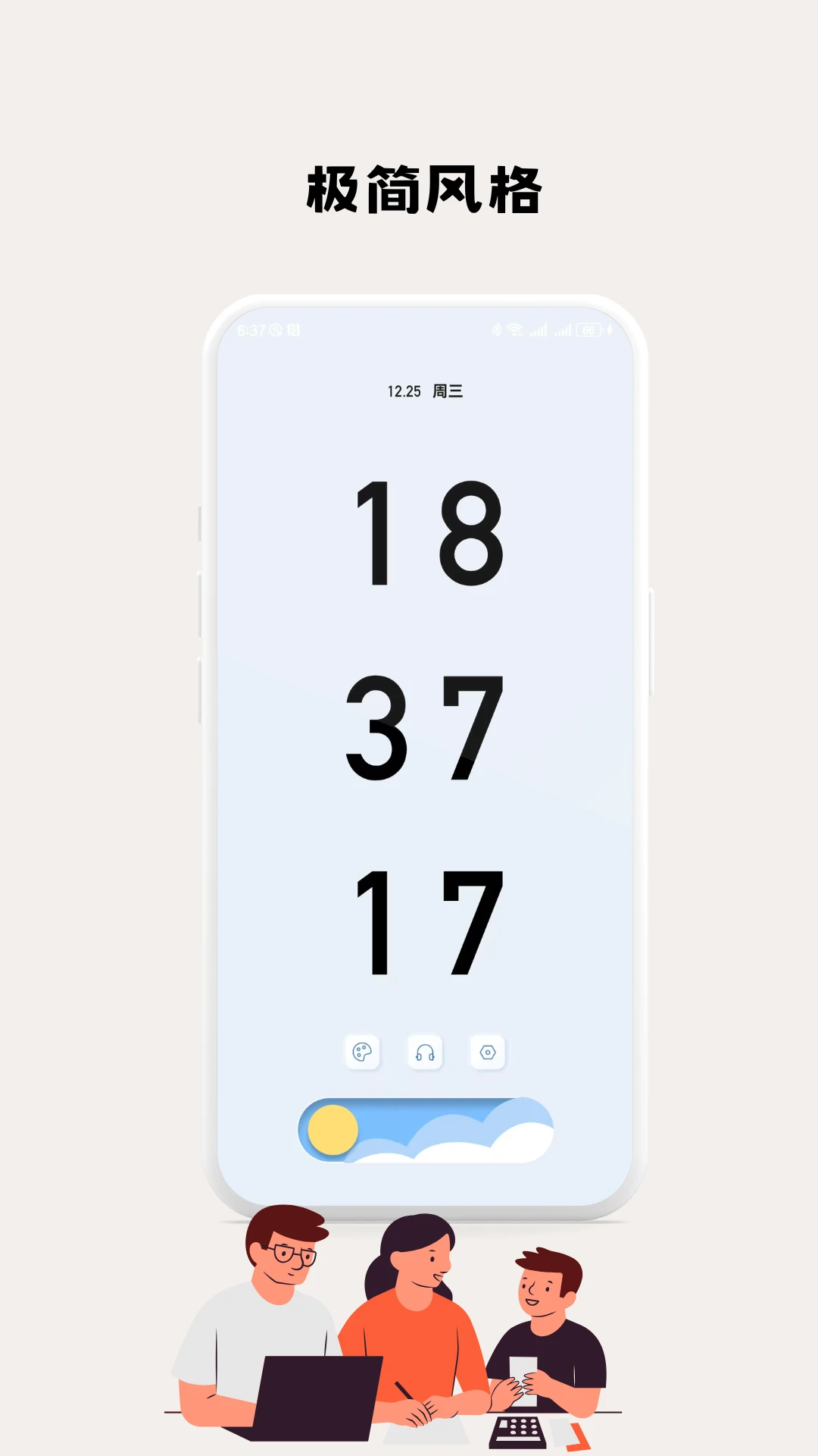 桌面时分:简约高效的时间管理神器在繁忙的日常生活中,时间管理成为了我们不可或缺的一部分。桌面时分,一款专为追求高效与简约生活方式的您设计的时钟应用。全屏视觉体验,时间尽在掌握一进入"桌面时分",您将被其独特的全屏设计深深吸引。没有繁琐的图标和冗余的界面元素,只有清晰明了的时间显示。时间以翻页的形式动态展现,每一次翻页都如同时间的轻轻翻动,既美观又富有科技感。无论您是放置在桌面还是床头,都能轻松从各个角度查看时间,让时间管理变得简单而直观。个性化壁纸与音乐,营造舒适氛围"桌面时分"还提供了丰富的个性化设置选项,让您的时钟界面更加符合个人喜好。您可以选择各种高清壁纸作为时钟背景,让每一次查看时间都成为一次视觉享受。同时,我们还精心挑选了多种音频资源,包括大自然声音、轻音乐等,帮助您在工作或学习的间隙放松身心,营造更加舒适的环境。