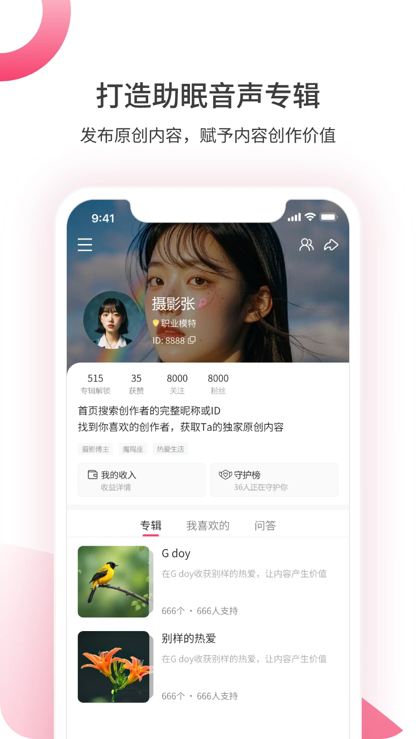 创作平台:支持创作者制作专属主题专辑,赋予音声作品更多个性化表达空间。