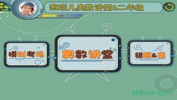 对应的三个学习模块:"奥数讲堂"、"模拟考场"、"错题集";