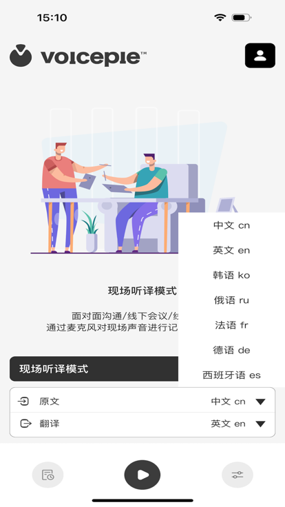 在此可以进行多种音频实时翻译,非常精准,无论是商务谈判还是日常对话,都能准确传达您的意思。
