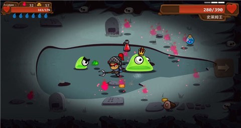 游戏开始时,系统会随机分配角色造型和初始武器。每种武器都拥有独特的攻击方式:普通攻击、消耗MP的特殊攻击、移动技能以及武器专属技能。玩家还可以通过收集血瓶来提升治疗能力,长按血瓶按钮可进行持续治疗。