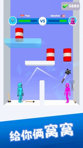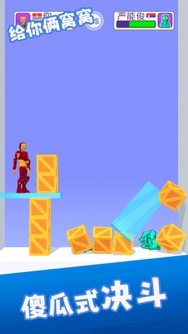 《给你俩窝窝》是一款充满欢乐与挑战的休闲竞技游戏,玩家将操控个性十足的小人角色,在丰富多彩的舞台上展开精彩对决。游戏采用简单直观的对抗机制,核心玩法就是通过灵活操作和策略运用,在激烈的战斗中击败对手。每件武器都经过精心设计,拥有独特的攻击方式和战术价值,合理使用它们将成为制胜关键。游戏节奏明快,操作流畅,无论是单人闯关还是多人对战都能带来十足乐趣。多样化的角色技能和战斗场景,让每场对决都充满新鲜感。
