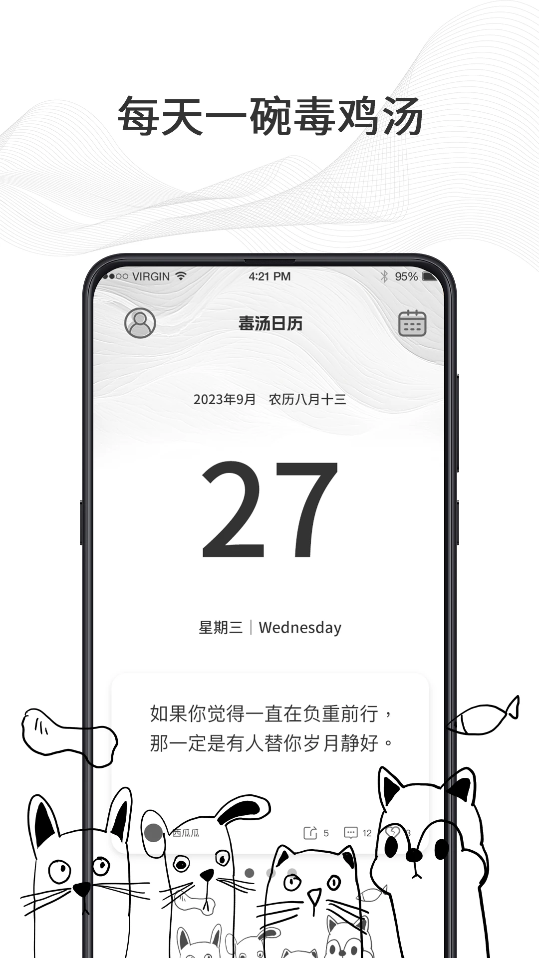 反鸡汤文案独具特色,不同于传统日历的励志语录,更贴近现实生活。