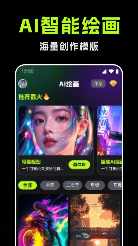 AI绘画画家专业版app是一款功能强大的智能AI绘画工具软件,专为艺术爱好者和创意人士设计。无论你是专业画家还是绘画新手,这款软件都能帮助你轻松实现艺术创作梦想。通过先进的AI技术,用户可以一键生成精美的艺术作品,探索无限的艺术可能性。软件内置海量创作模板,涵盖多种风格和主题,平台还会智能推荐当前最热门的模板,让你轻松找到灵感来源。无论是写真风格、抽象艺术还是二次元动漫,都能在这里找到适合的模板进行同款制作,打造属于自己的独特作品。