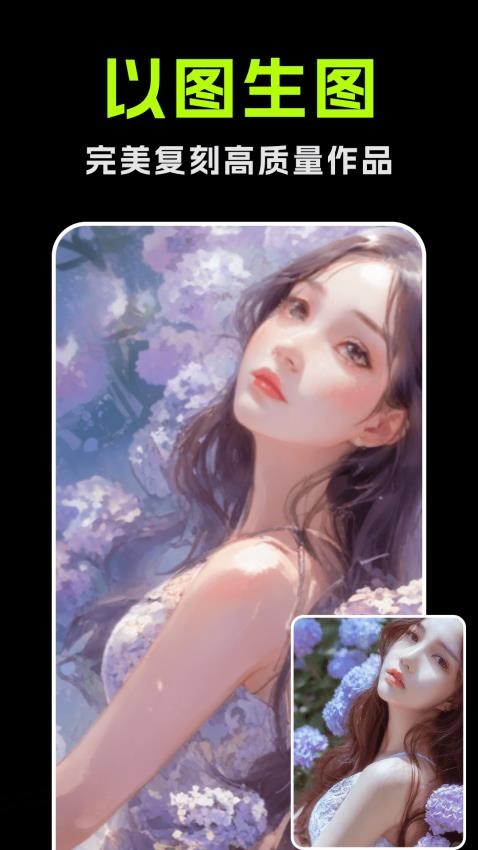 AI绘画画家专业版app提供了两大核心创作功能:以文生图和以图生图。在以文生图模式下,用户只需输入文字描述,AI就能根据你的想象生成相应的画作,让天马行空的创意快速变为现实。而以图生图功能则允许用户上传现有图片,AI会基于原图风格进行再创作,帮助你实现作品的完美复刻或风格转换。此外,软件还特别推出了动漫头像生成功能,用户只需上传照片,就能一键转换为精美的二次元角色形象,打造专属于你的虚拟形象。