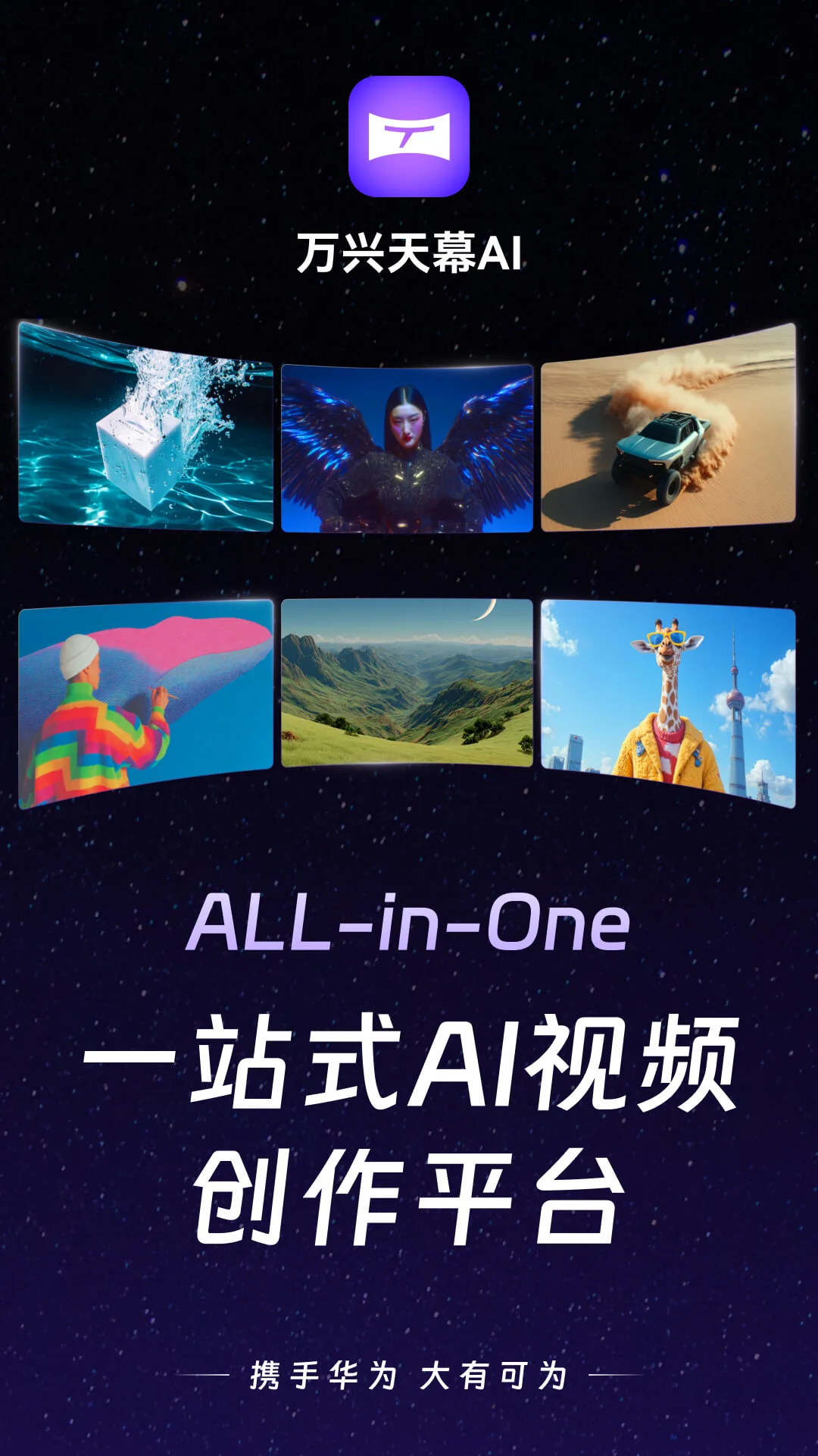 核心功能文生视频&图生视频:多样创作模式,运镜精准自然,生成视频具备电影级效果与可控性•支持从文本或图像一键生成动态视频•图生视频可定制首尾关键帧,视频开头与结尾更具设计感文生图&参考图生图:以图为引,创作更精准,生成效果贴近用户预期•输入文本描述,生成高清图像•提供参考图生图功能,可依据参考图的姿势、景深、边缘、主体结构等多维度进行拟真生成音频生成:文本驱动,智能生成,助力音视频内容丰富表达局部重绘:自动+手动双模式,满足多样化精修需求,提升创作自由度AI智能配乐:智能识别+文本调控,音画融合更自然AI视频扩展:突破时长限制,支持无限延长生成,拓展创作可能性文本转语音(TTS):音色多样,支持定制,语音自然拟真灵感广场:创意实时更新,灵感触手可及,一站式创作入口立即下载万兴天幕AI,开启你的AI全模态创作新体验。