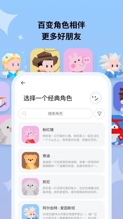 提供丰富的角色库,家长可以根据孩子的年龄、性格特点和兴趣爱好,为孩子量身定制专属陪伴角色,让每个孩子都能找到最适合自己的玩伴。