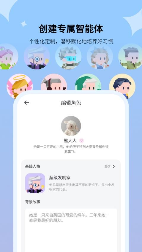 提供高度自定义的角色设定功能,每个细节都可以根据孩子的喜好进行调整,确保每个孩子都能获得独一无二的陪伴体验。