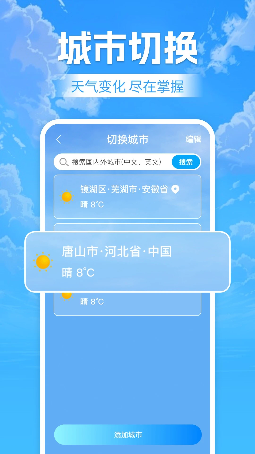 健康指数提醒:根据天气变化推送穿衣、晨练、防晒等建议
