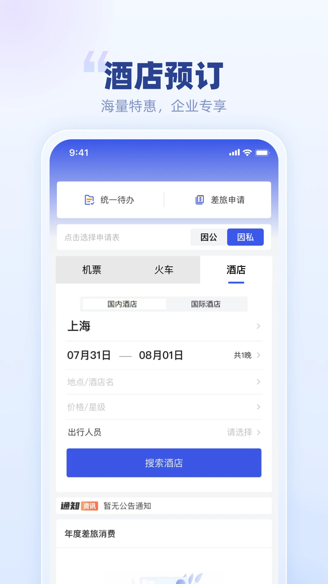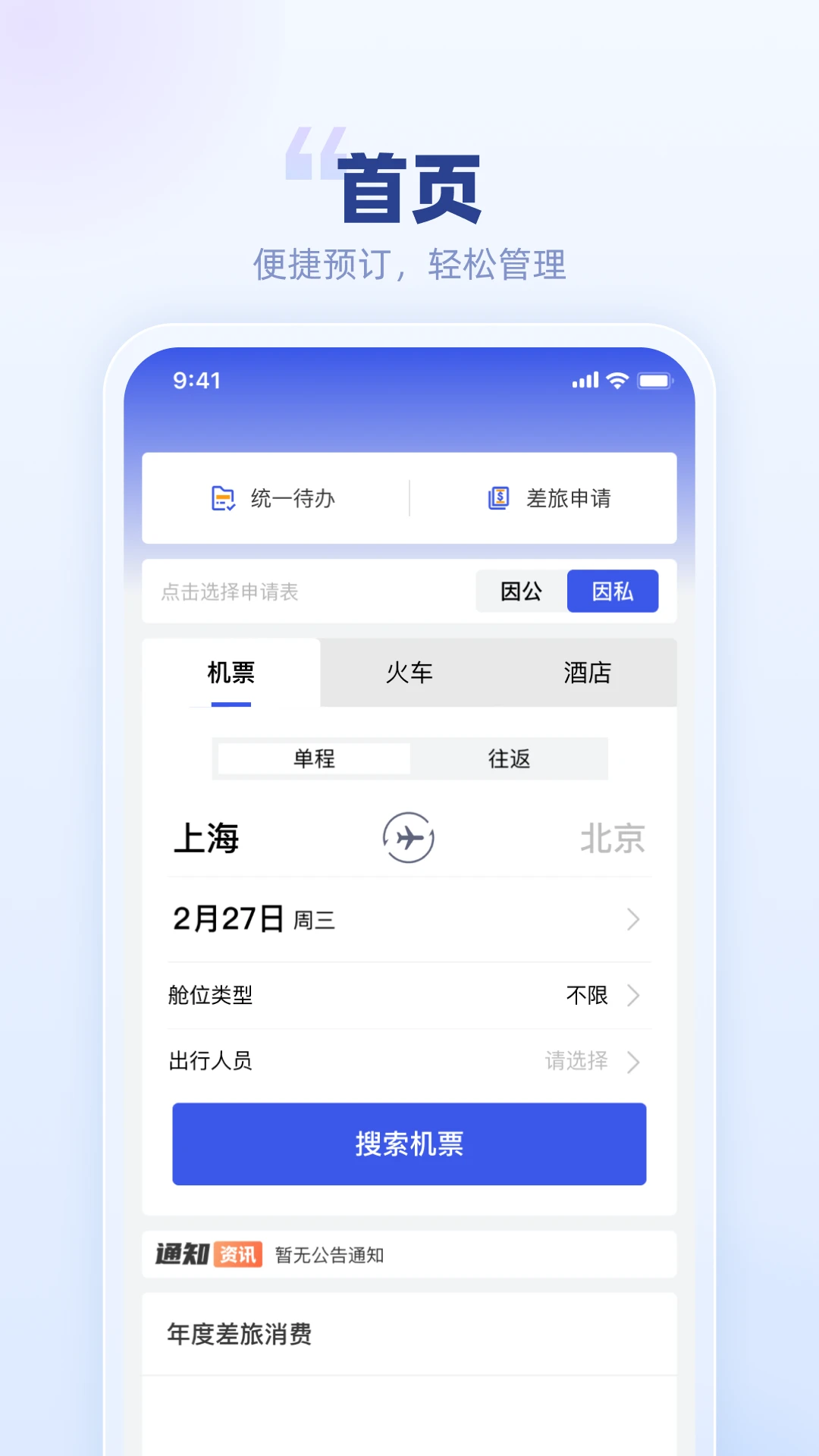 便捷的出行体验,简化预订流程,提高员工出行效率。