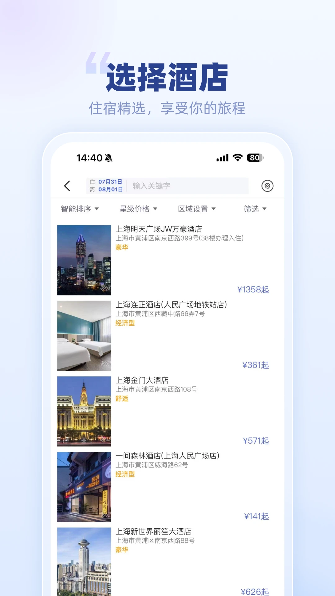 简洁高效的预订流程,支持移动端操作,随时随地完成出行安排。