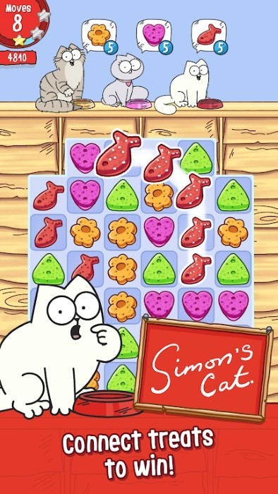 有很多的美食饼干可以让你来消除,收集各种零食可以让你的猫咪变得更强。随着游戏进程,你可以解锁更多可爱的猫咪角色,每个角色都有独特的能力。