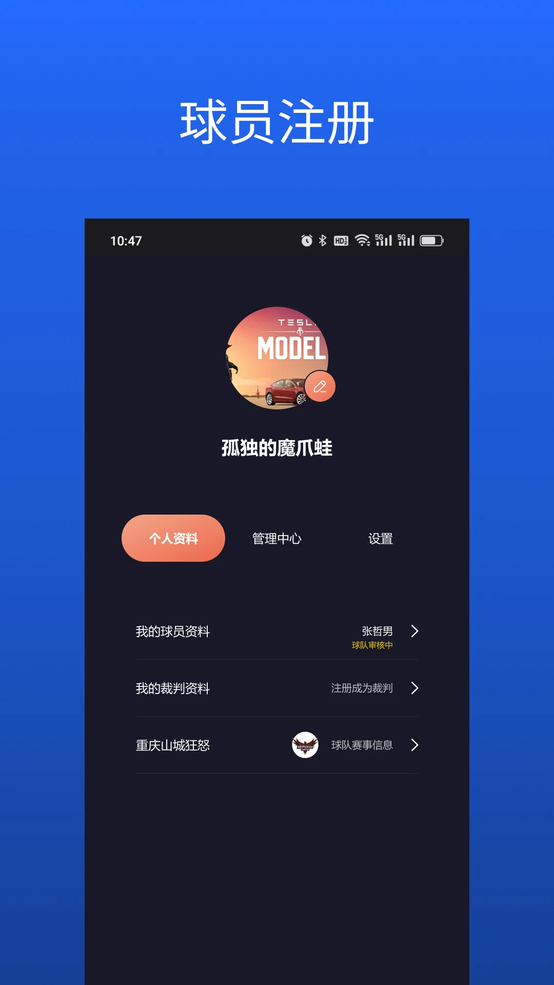 球员和教练注册:支持在线注册,简化报名流程,节省时间。