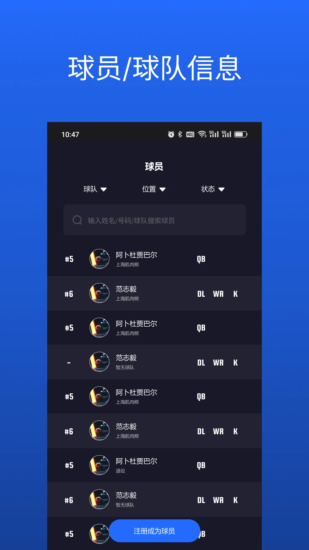球员和球队信息:展示球员个人资料和球队战绩,帮助用户全面了解联盟成员。