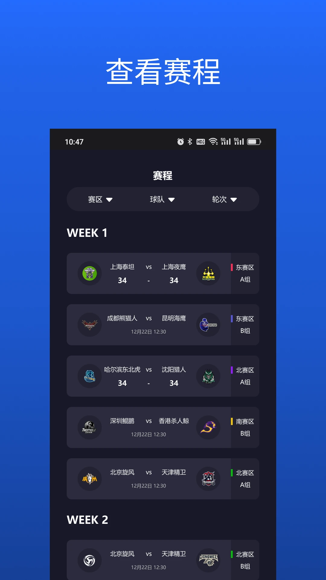 赛程查看:实时更新比赛日程,让用户随时掌握比赛动态。