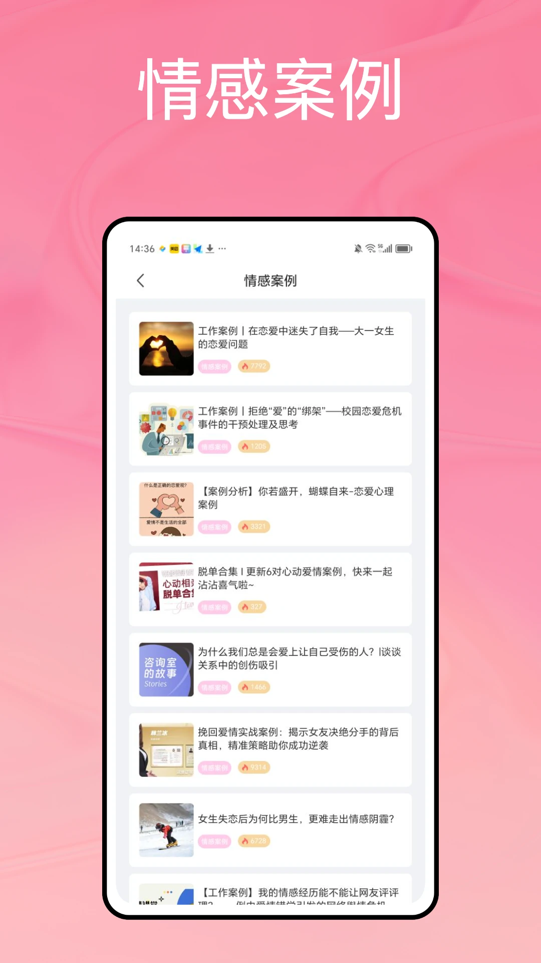 收录真实情感案例,帮助用户学习恋爱中的沟通技巧。