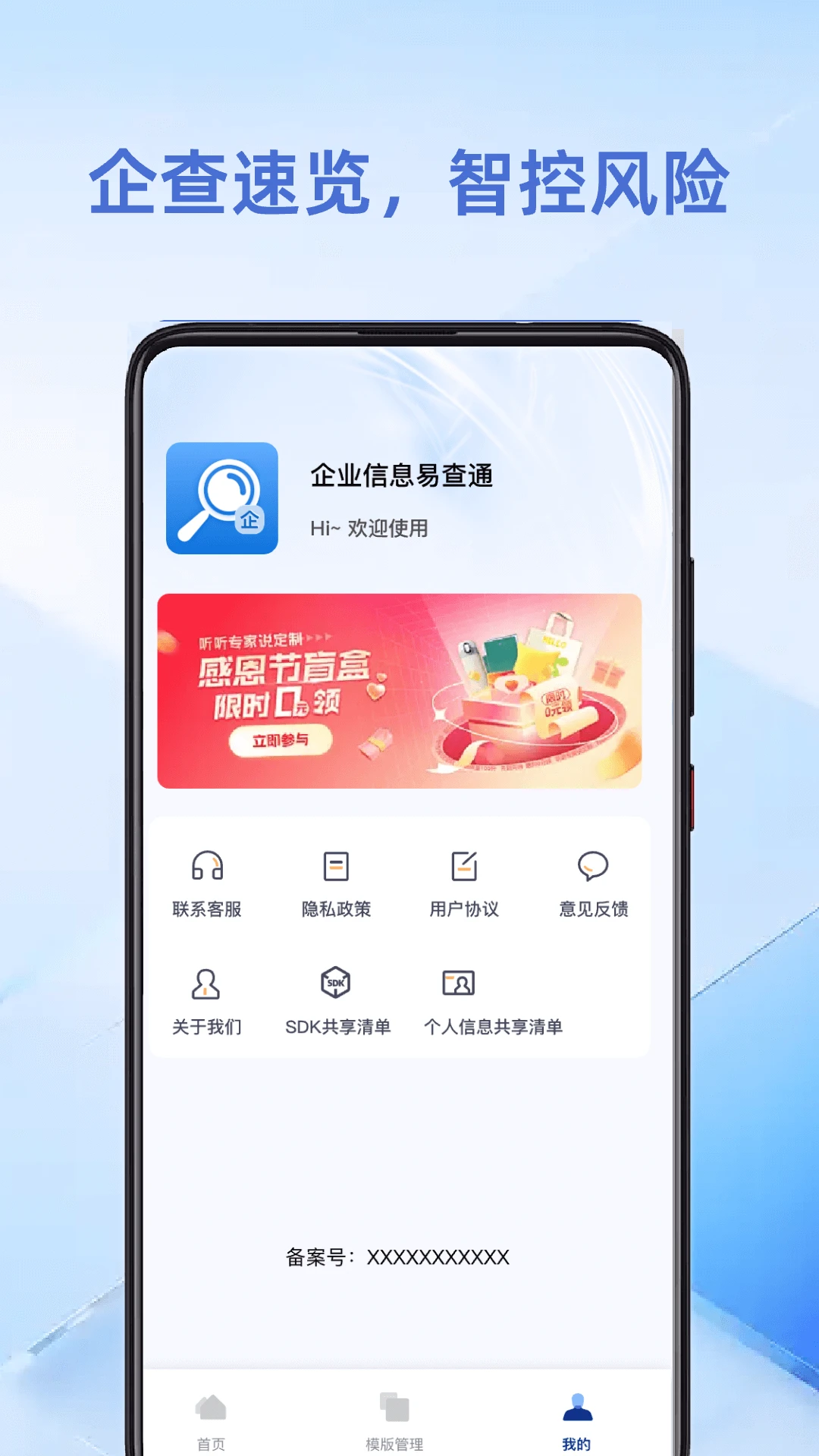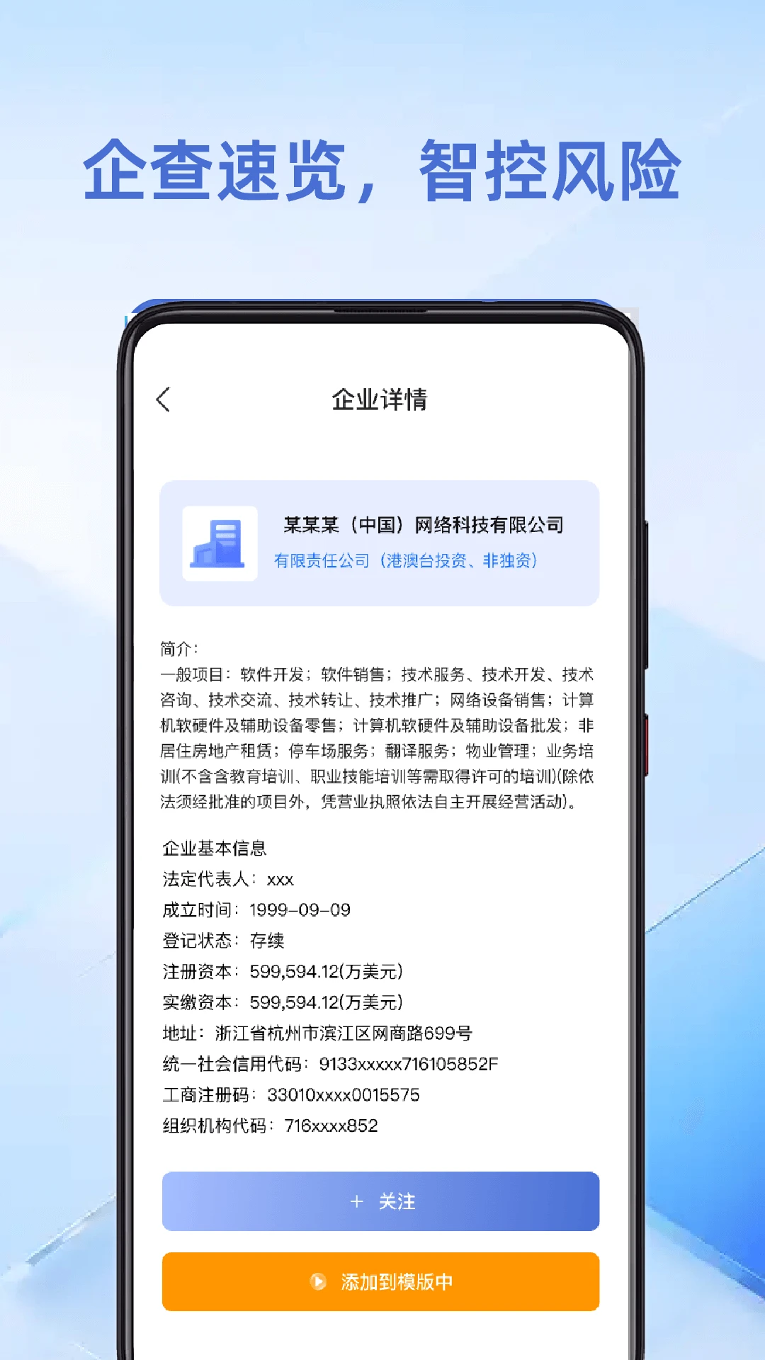 企业信息查询:支持通过企业名称、注册号或统一社会信用代码快速检索,获取工商注册信息。